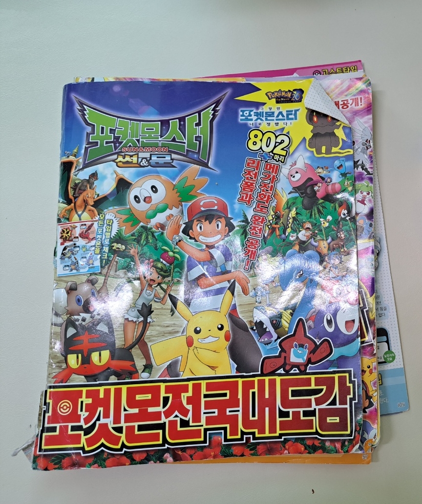 한 동안 아이들 등원하고 나면 찢어진 부분이나 조각난 부분 주워다가 테이프칠 열심히 했는데 더 이상은 그럴 수 없는 지경에 이르러 붙이기를 포기하고 새로운 포켓몬 도감을 구입 합니다 ㅎㅎ