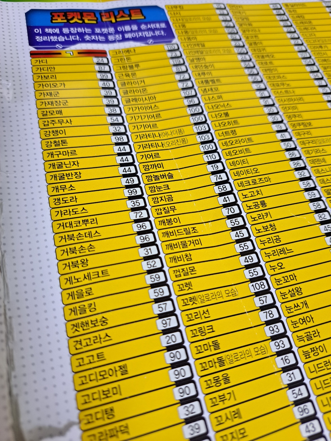 그리고 마지막 페이지에는 이름 순서대로 정리 되어 있어서 궁금한 포켓몬만 빠르게 찾아볼 수 있습니다.